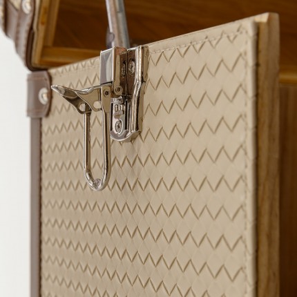 Cette malle qui contient un bar est une vraie pièce d’exception. Différents compartiments et porte-bouteilles ainsi qu'un plateau amovible se trouvent à l’intérieur pour des apéros réussis. Son revêtement en simili tressé beige est facile d'entretien.