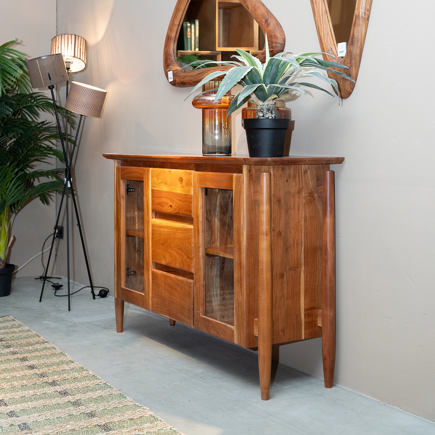 La gamme Denver vous propose un ensemble de mobilier en bois alliant authenticité et fonctionnalité. Ce buffet propose des espaces de rangement astucieux, idéaux pour organiser et structurer votre intérieur. Le bois naturel, aux teintes chaleureuses, confère à ce meuble une élégance sobre et intemporelle.