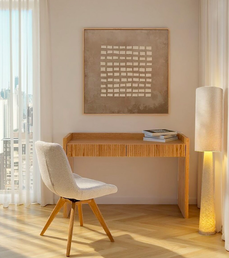 Les meubles de notre collection Brighton dégagent le charme des années 1950 dans un style moderne et élégant. Les veines caractéristiques du bois et les lignes verticales des façades apportent une chaleur naturelle et un look dynamique à votre intérieur. Les façades sans poignées avec fonction d'ouverture pratique par pression garantissent un aspect général épuré ainsi qu'une utilisation confortable au quotidien. Grâce à leur espace de rangement bien conçu et flexible, ces meubles sont de véritables atouts d'organisation, comme ce bureau avec ses deux tiroirs pour ranger les fournitures de bureau et documents.