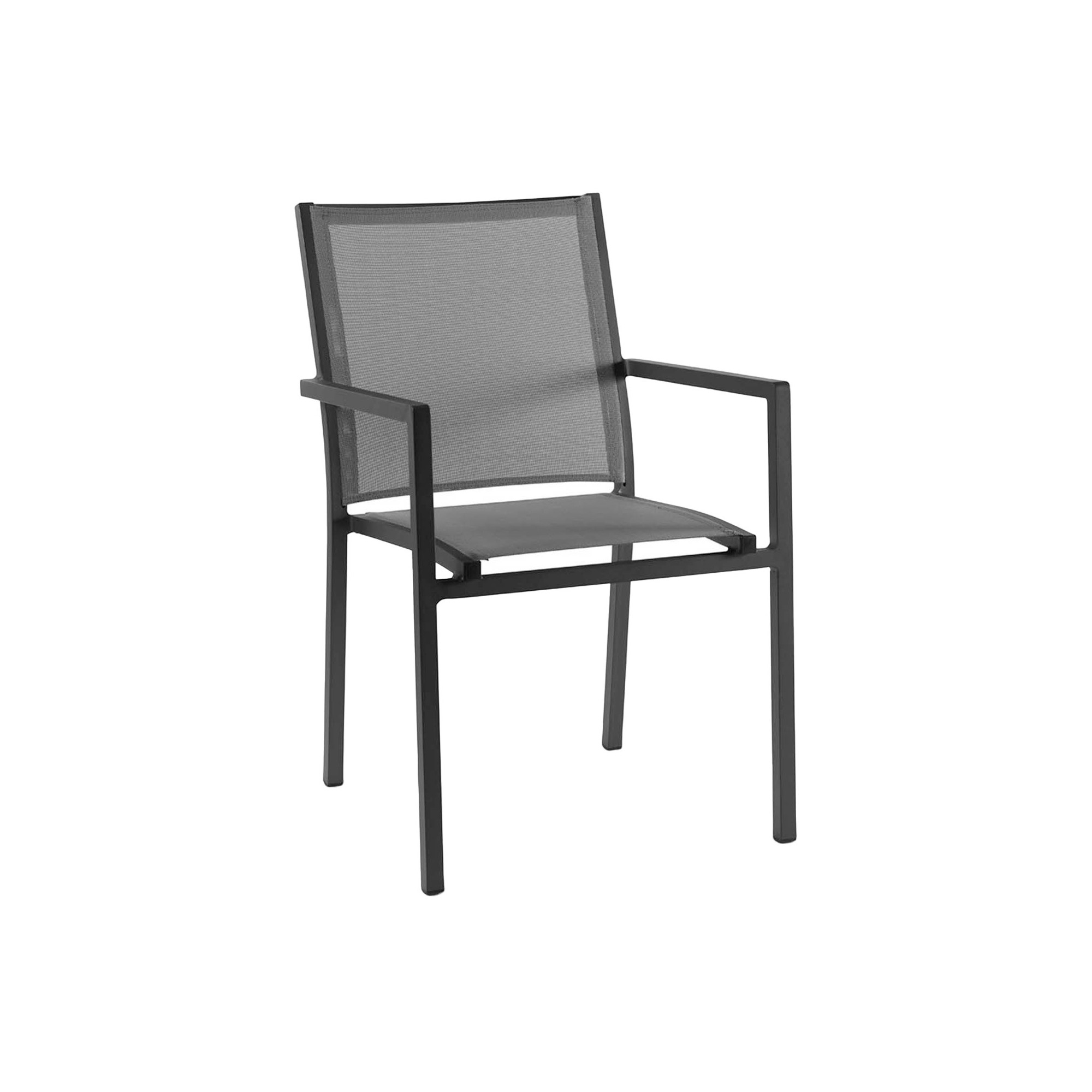 Cette chaise est un classique dans le monde du mobilier de jardin avec une structure en aluminium mat et une assise en textilène.