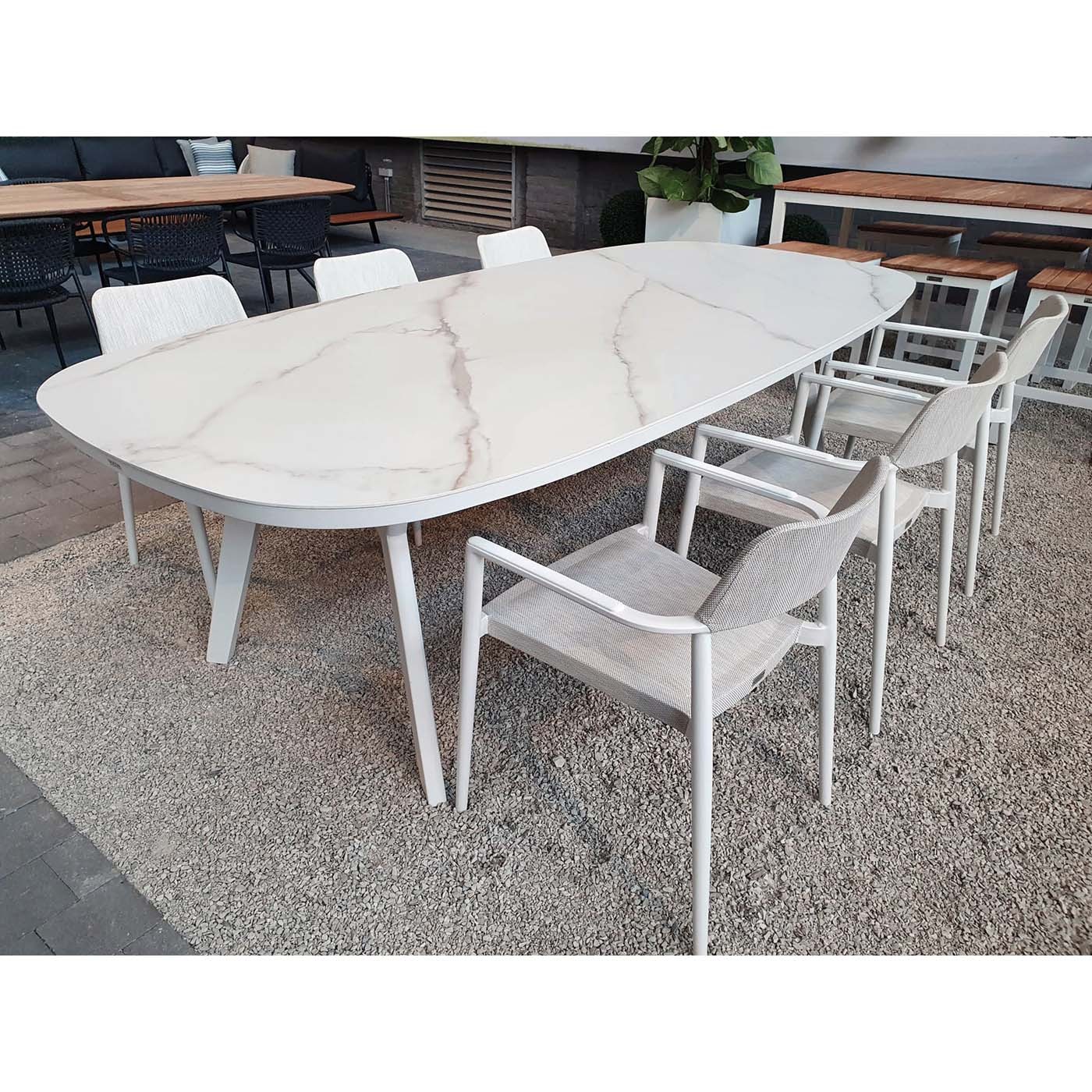 Cette chaise avec accoudoirs est idéale pour vous relaxer au bord de la piscine : son assise en textilène est conçue pour un séchage rapide et sa structure en aluminium ne craint également pas l'eau.