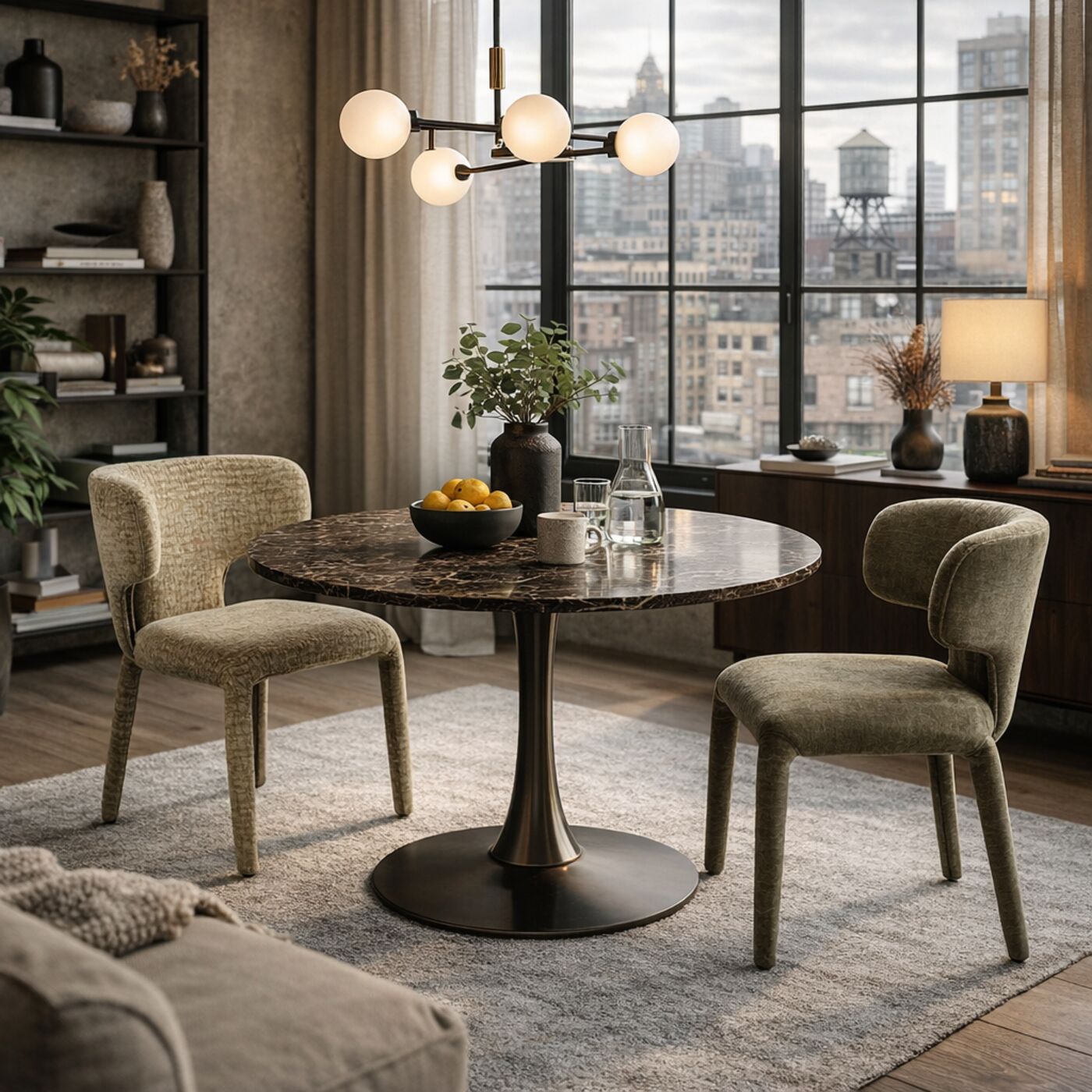 Cette chaise design séduit par ses lignes douces et enveloppantes. Son dossier arrondi avec accoudoirs intégrés offre un bon maintien tandis que son revêtement toucher velours apporte une touche chaleureuse à la salle à manger. L’assise confortablement rembourrée et le piètement en acier poudré assurent un équilibre parfait entre confort et stabilité.