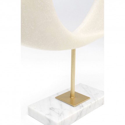 Cette décoration blanche, repose sur une tige dorée et un bloc en marbre. Son design épuré et son contraste de matériaux font de cette sculpture une oeuvre d'art captivante.