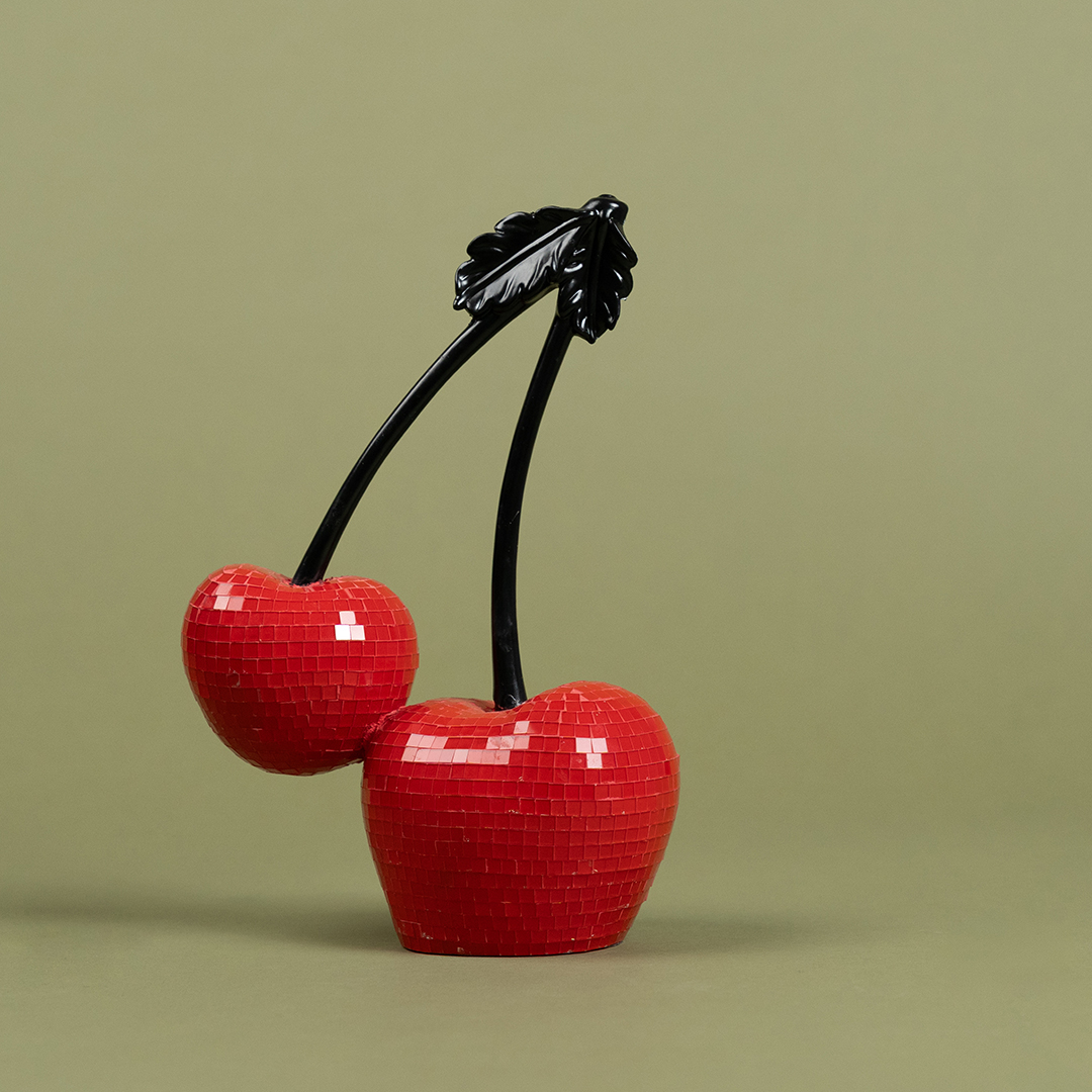 Ce duo de cerises décoratives brillantes apporte une touche d’extravagance fruitée avec sa couleur rouge éclatante, un véritable régal pour les yeux ! Grâce à leur assemblage en mosaïque, elles captent la lumière sous tous les angles et diffusent un éclat vibrant, comme un petit air de piste de danse à la maison. Cette décoration fait particulièrement effet sur un buffet, une table en verre ou associée à des accessoires en métal brillant. Idéale pour égayer un intérieur épuré avec une note colorée et un soupçon de glamour rétro.