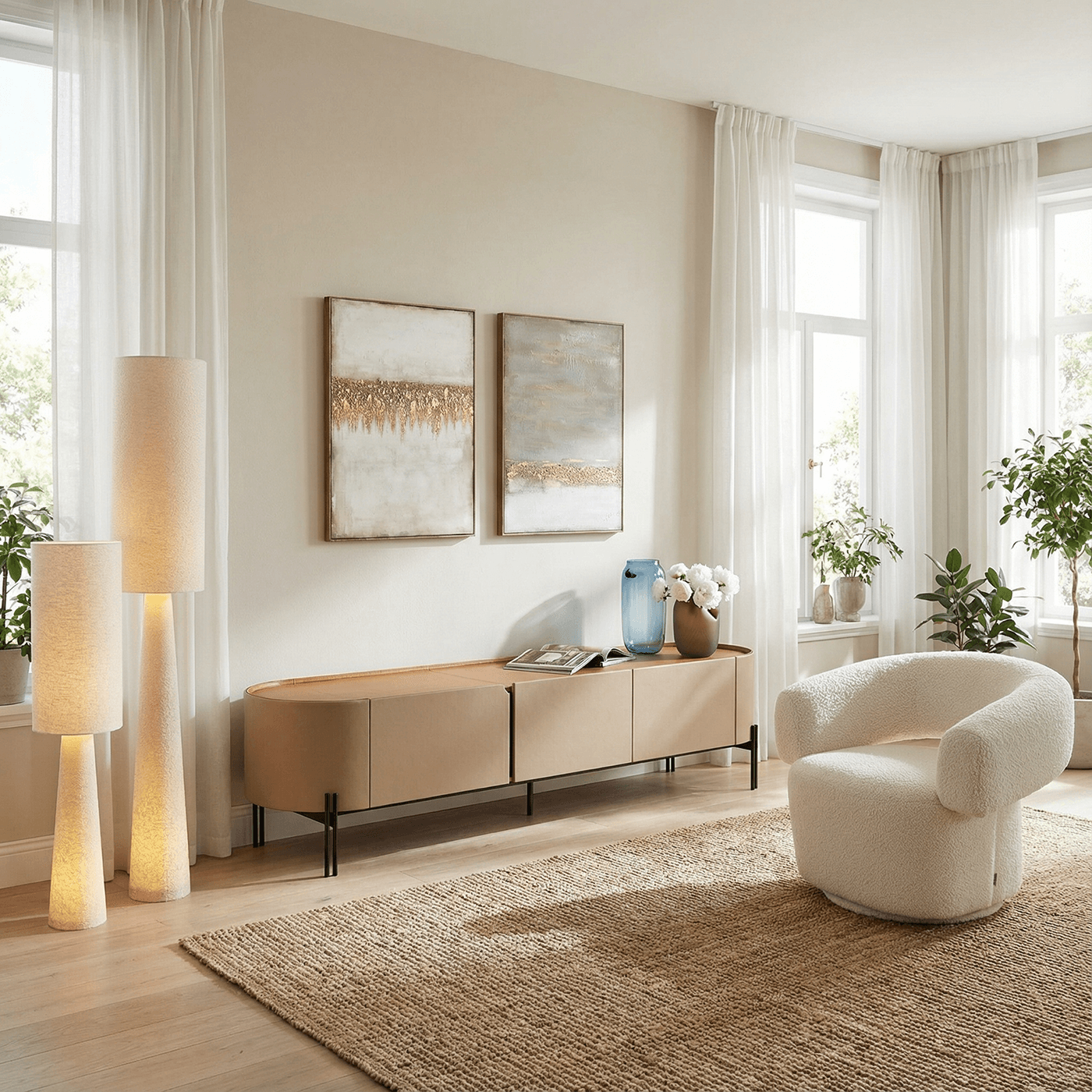 This abstract painting is the ideal piece to embellish your living room. Its beige and brown colors illuminated by touches of gold and its abstract style are sure to give your interior a modern touch. The style of this painting gives you the opportunity to create a contemporary atmosphere throughout the room.