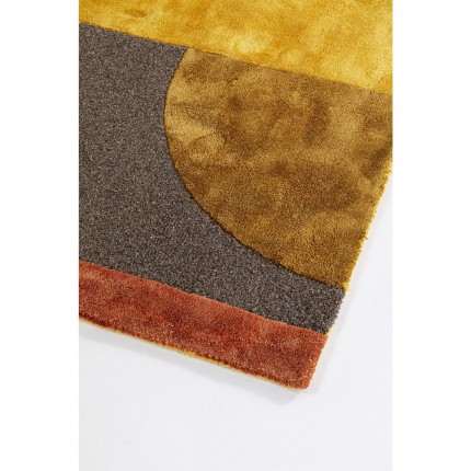 This rug plunges you into a colorful retro universe with its warm hues combined with an atypical silhouette. The patchwork of textures, colors and shapes makes it an artistic and designer rug. It can be placed under a dining table, in the living room as a visual link, or in the bedroom as a textile accent. It goes particularly well with elements in wood, linen or woven fibers. An elegant base for modern furnishings with personality.