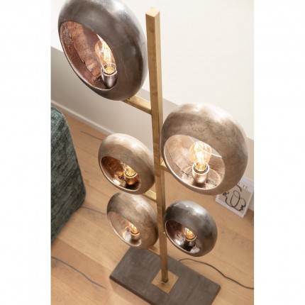 The five arms of this floor lamp are distributed on as many levels, like birds perched on branches. This luminaire is made of steel and aluminum coated with bronze, nickel or brass for a raw aesthetic.