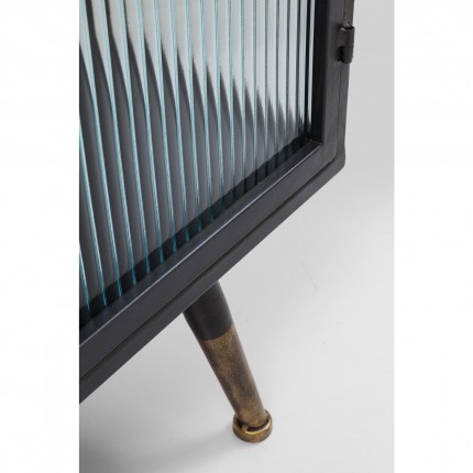 The Gomera collection offers you a series of industrial style storage units to furnish your living room or office. The furniture is made of powdered steel and lacquered compressed wood with glass elements that add dimension, all highlighted by bronze details.