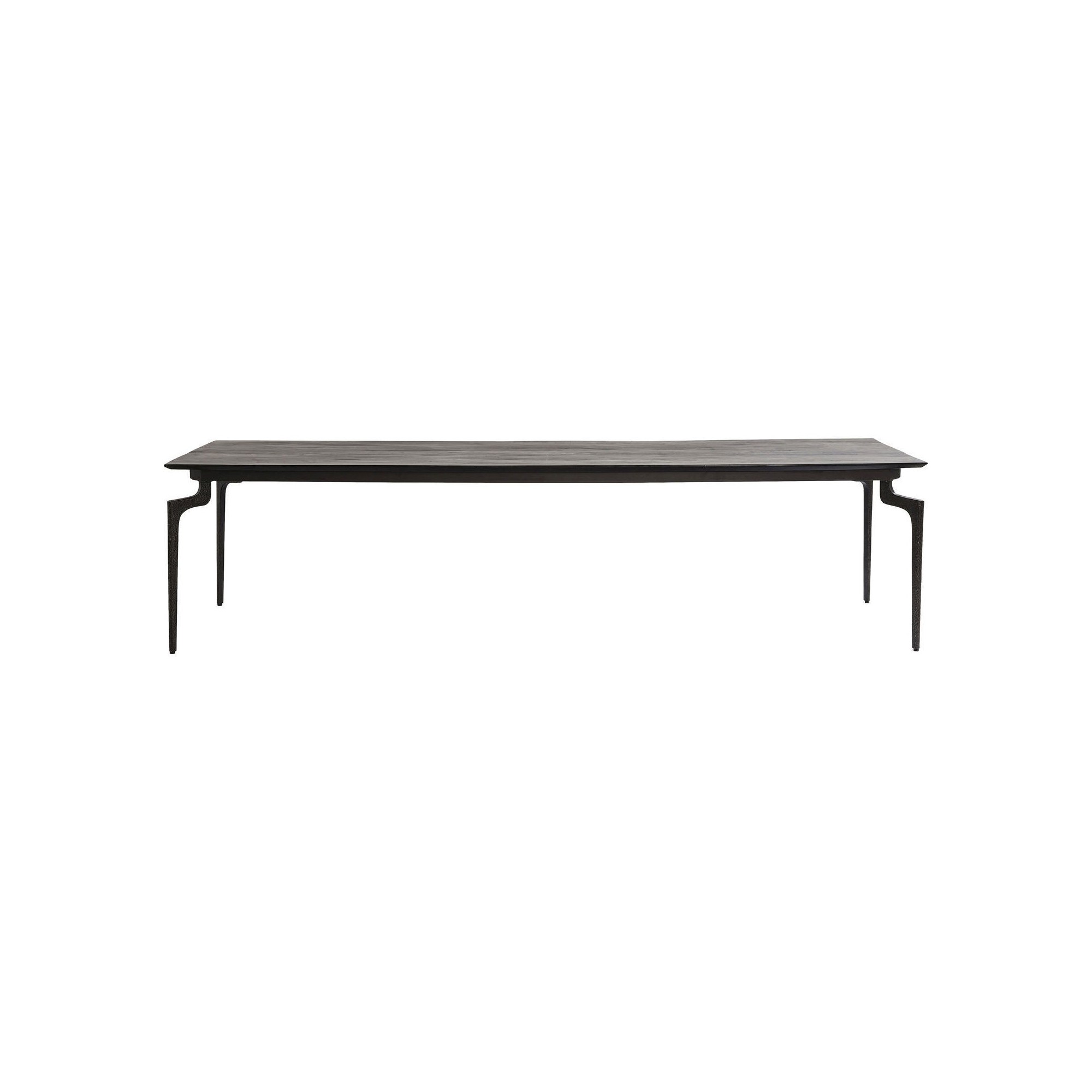 This table will charm you with its lacquered solid mango wood top and embossed steel legs that give it a raw character. Its hue can be matched with black, petrol blue and anthracite grey tones for a mysterious ambience as well as with pastel shades for a contrasting look.
