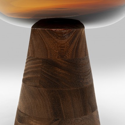 This vase is a fusion of nature and elegance, with its pyramidal wooden base contrasting with its amber glass container.