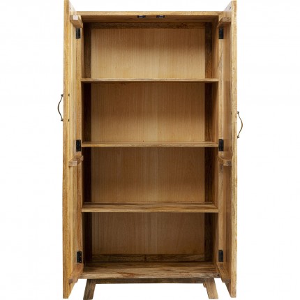 This wooden wardrobe is sure to delight children, as animals are carved on its front. Horses, elephants, giraffes, rabbits and dromedaries in particular bring a colorful, cheerful atmosphere to the room.