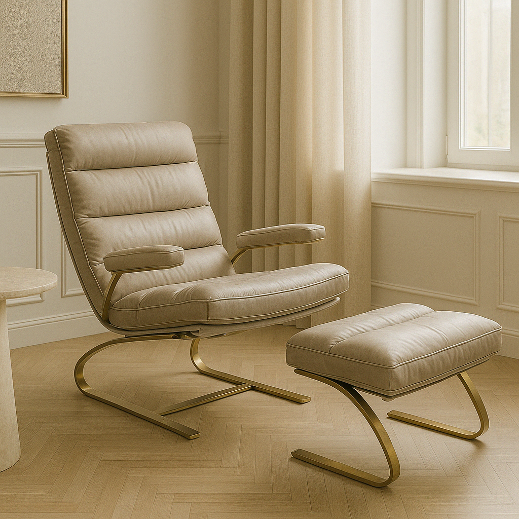 Avec ses lignes épurées et son piétement métallique, ce fauteuil en cuir s’impose comme une pièce raffinée, idéale pour aménager un coin lecture ou télévision.