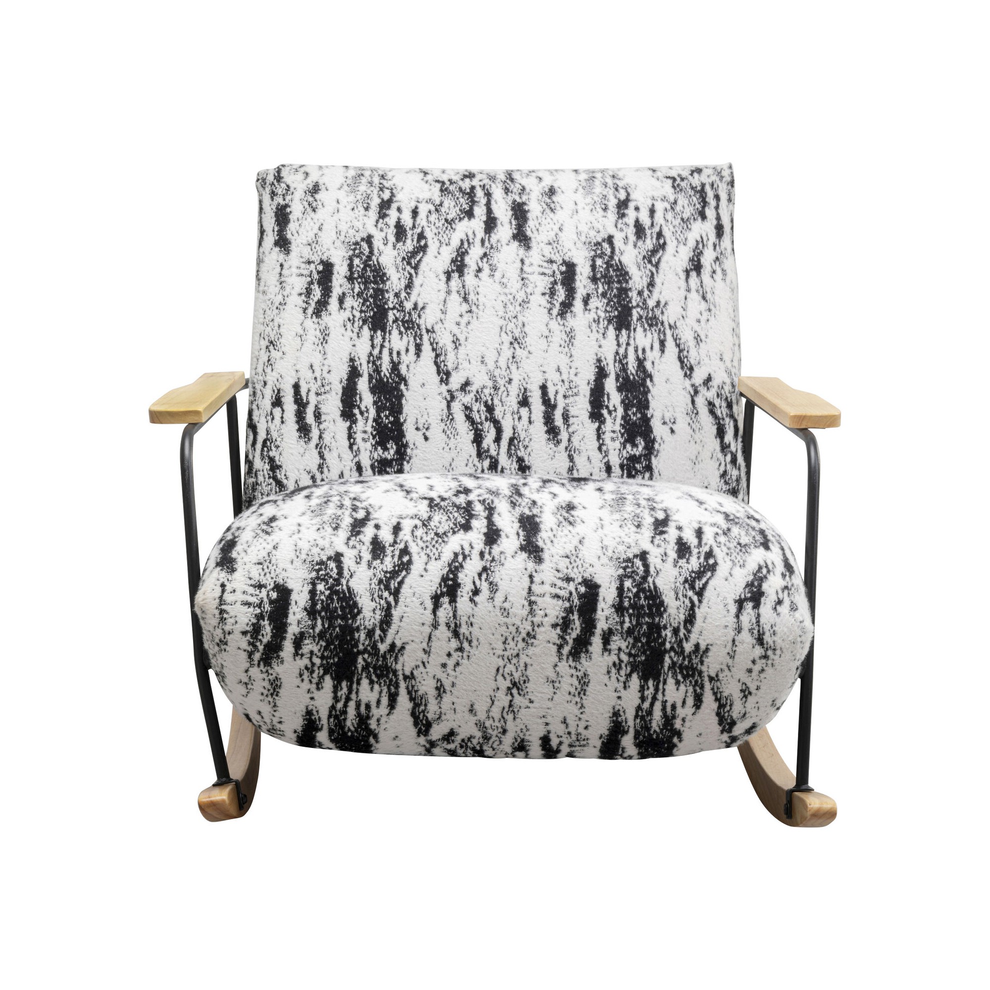 Laissez-vous bercer par ce fauteuil à bascule aux motifs noirs et blancs. Sa base courbée assure un balancement fluide, idéal pour vos moments de détente. Une pièce design qui s’intègre aussi bien dans un salon contemporain que dans un coin lecture cosy.