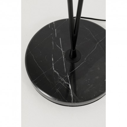 Ce lampadaire incarne l'élégance rétro. Sa base ronde en marbre noir supporte deux tiges en acier noir, chacune ornée d’un abat-jour en verre blanc. Subtilement rehaussé de touches dorées, il apporte un style sophistiqué à votre intérieur.