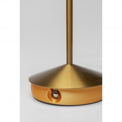 Cette lampe de table impressionne avec son abat-jour sculptural, contrastant avec sa structure fine qui lui apporte une élégance aérienne. Dotée d'un variateur et d'une batterie rechargeable, son abat-jour change de couleur en fonction de l'intensité lumineuse. Une fonctionnalité qui ne manquera pas d'impressionner vos invités.