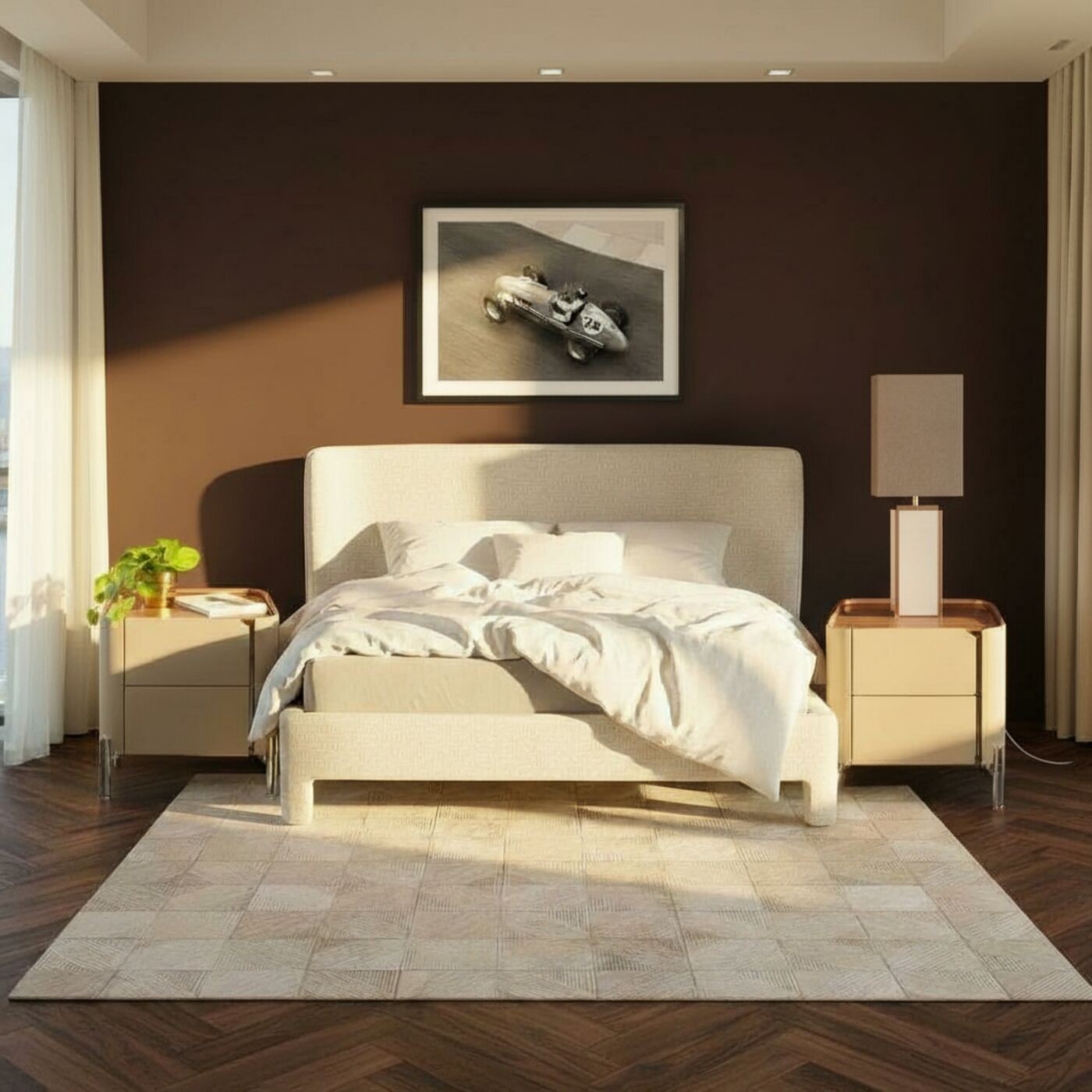 Cette lampe de table séduit par son design géométrique, qui en fait une pièce à la fois fonctionnelle et décorative. Son abat-jour en coton diffuse une lumière douce et chaleureuse, idéale pour créer une ambiance élégante et cosy. Le pied en verre miroir et aluminium nickelé offre une allure raffinée.