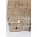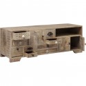 Ce meuble se démarque par ses tons chaleureux qui invitent à la détente. Il apportera une touche de fraîcheur à votre salon par son bois de manguier et un côté atypique par ses motifs et ses poignées. Ce meuble TV allie esthétique et fonctionnalité afin de trouver facilement sa place dans votre salon. Doté de tiroirs et de panneaux fermés, ce mobilier est conçu pour y placer votre décodeur, vos télécommandes et vos DVD. Ce dernier possède d’ailleurs un trou qui vous permet d’y faire passer vos câbles. Livré monté (carton de 49 x 132 x 47 cm). Chaque pièce est unique.