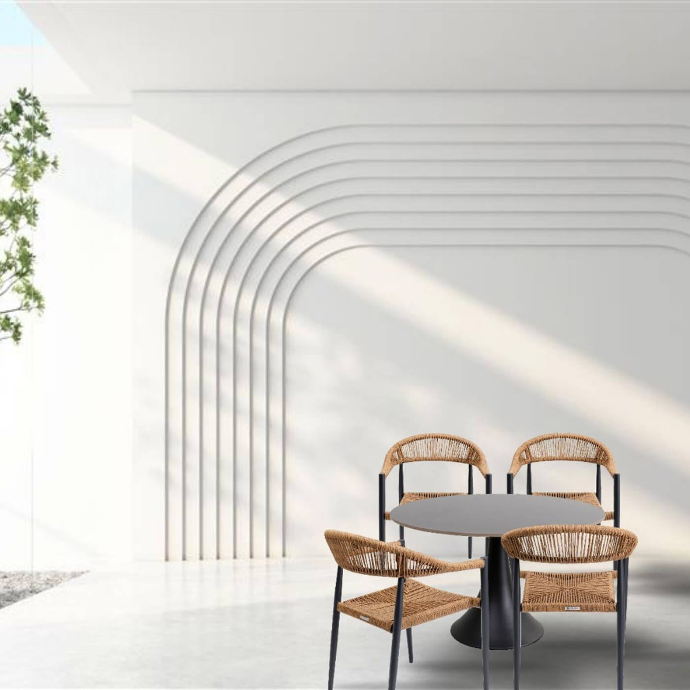 Cette table à manger Grande Possibilita ronde allie design contemporain et fonctionnalité avec son pied tulipe en aluminium poudré et son plateau en grès brut, robuste et facile d’entretien, chaque modèle présentant des nervures uniques. Pour compléter votre espace, nos chaises d’extérieur Palma offrent légèreté, résistance à l’eau et confort ergonomique, idéales pour profiter pleinement du soleil dans votre jardin, sur votre terrasse ou au bord de la piscine.