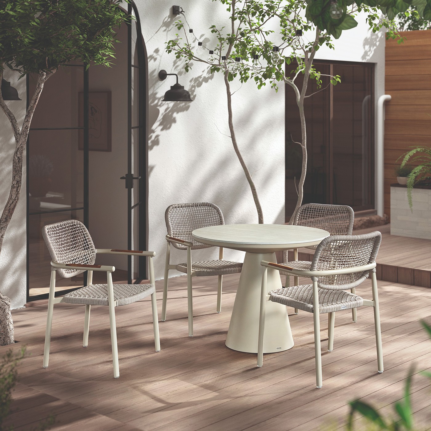 Apportez une touche d'élégance contemporaine à votre extérieur avec cette table à manger de jardin au design épuré. Le plateau rond en céramique 'romano travertino' ajoute raffinement au pied en aluminium.