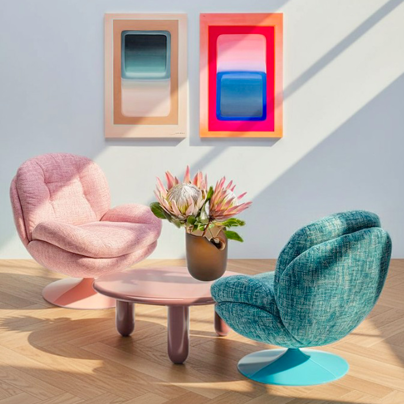 Des couleurs rafraîchissantes associées à des formes abstraites et fluides font de cette toile un véritable point fort déco dans tous les intérieurs. Parfait pour contraster élégamment avec un mobilier épuré ou s’intégrer à des décors colorés audacieux. Que ce soit au-dessus d’un canapé ou dans une composition murale, cette oeuvre insuffle dynamisme et personnalité à votre espace.
