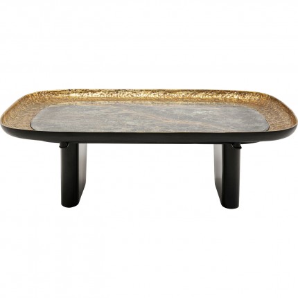 Avec son plateau en marbre et ses rebords dorés martelés à l’effet vintage, cette table basse allie élégance et caractère. Son design lui confère des allures d’oeuvre d’art, digne des plus belles collections de musée.