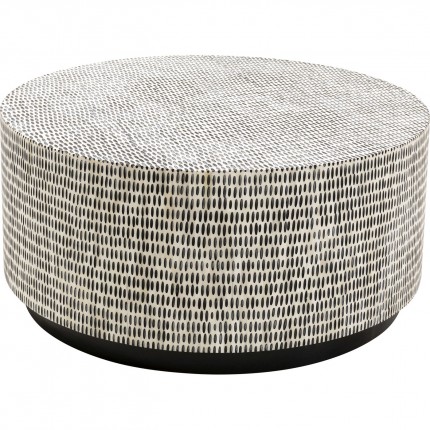 Cette table basse ronde blanche attire le regard avec ses petits motifs ovales noirs répartis sur toute sa surface. Un design graphique et plein de pep’s, idéal pour ajouter une touche de style à votre intérieur.