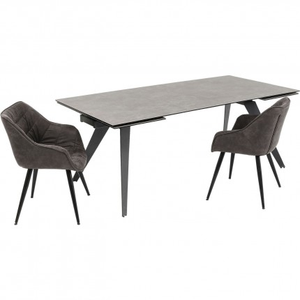 Cette table à rallonges accueille 8 personnes lorsqu'elle est pliée et 12 personnes une fois les 2 rallonges sorties. Elle s’intégrera parfaitement dans un environnement industriel, avec des chaises en cuir.