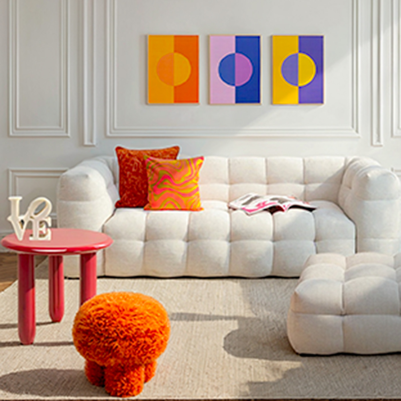 Ce tabouret coloré à poils longs attire immédiatement le regard et apporte une touche audacieuse à votre intérieur. Son revêtement bouclé est parfait pour dynamiser un salon, une chambre ou un dressing. À la fois décoratif et fonctionnel, il peut être utilisé comme assise d’appoint ou comme repose-pieds pour un moment de détente.